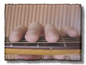 Don't press down, just touch the strings.