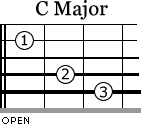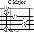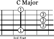 Here is an example of the three different bar chords. If you wanted to play a C Major chord three different ways, you would play this as written below.