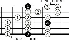 The MIDI below is the sound of an "A Minor Scale" starting from the 5th fret.