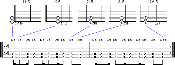 One of the more popular aspects to drop D tuning is that you can play 5th chords quicker. Rather than sliding two fingers up and down the neck of the guitar as you do with normal 5th chords, when you use drop D 5th chords you only use one finger. And if the sequence of chords are close to each other then you'll find you can move quickly between them. This example show how much easier it is to play a fast sequence of chords using drop D 5th chords. Try playing the song below and use normal 5th chords and see how long you can keep up for.