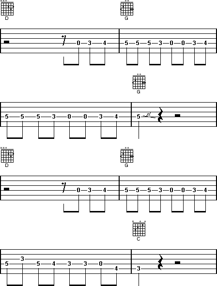 2nd Half Of Verse: Repeat this C and G pattern another two times then go on the the D chord Below.