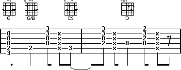 The verse is a plain rhythm pattern, to make the song smoother try and change to the next chord about a beat or a half beat before. The "XXXX" on the tab are muted strings (muting with your left hand), to get a muted sound just release the pressure on your left hand making the chord but leave you fingers on the strings, so when you strum it produced a thud sound.