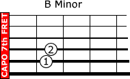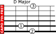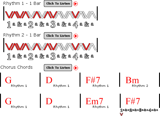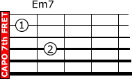 These are the 5 chords used in the chorus, once again it is played with a capo on the 7th fret on a 12 string guitar.