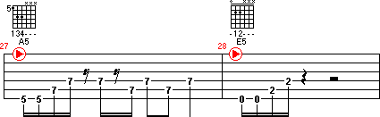 This guitar part is played in verse 1 & 2, this riff re-enforces the bass line, giving the bass a punchy dominant sound. It is subtle in the mix and you could almost think that it's not even there. This is a good example of how song parts and instrument blend to create a bigger picture.