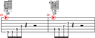 The 12 string guitar continues through the verses as well as the intro. When you listen to the above MP3 example you can hear up to 7 guitars playing at once. Playing this in a standard band would make this a difficult song to add to the repertoire. That's why you don't see too many bands play it (or play it well). This muted guitar plays through both verses, it has no note or tone value, it is purely percussive.